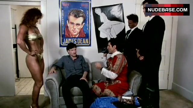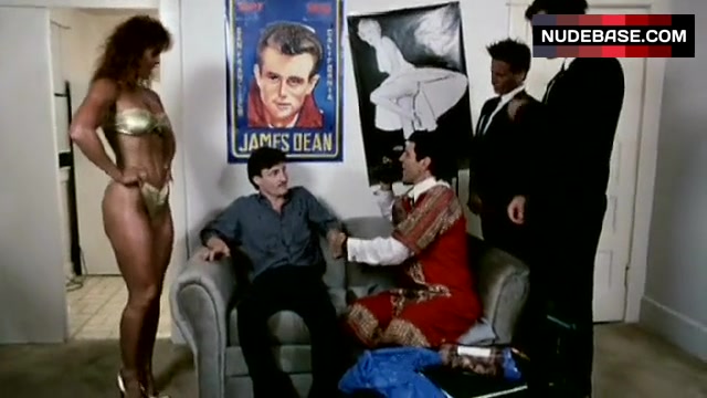 Spice Williams shows her body in gold bikini in the movie "Sexbomb".