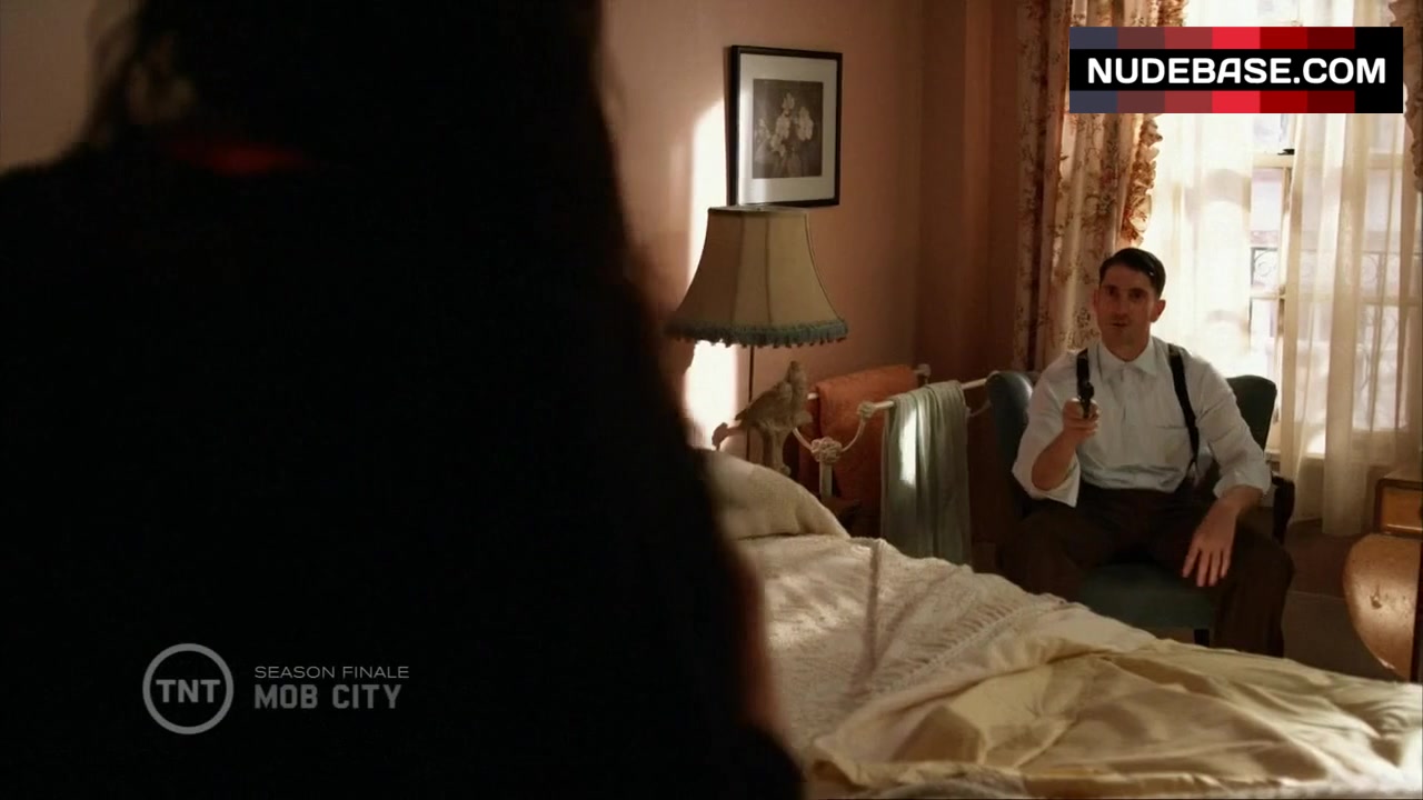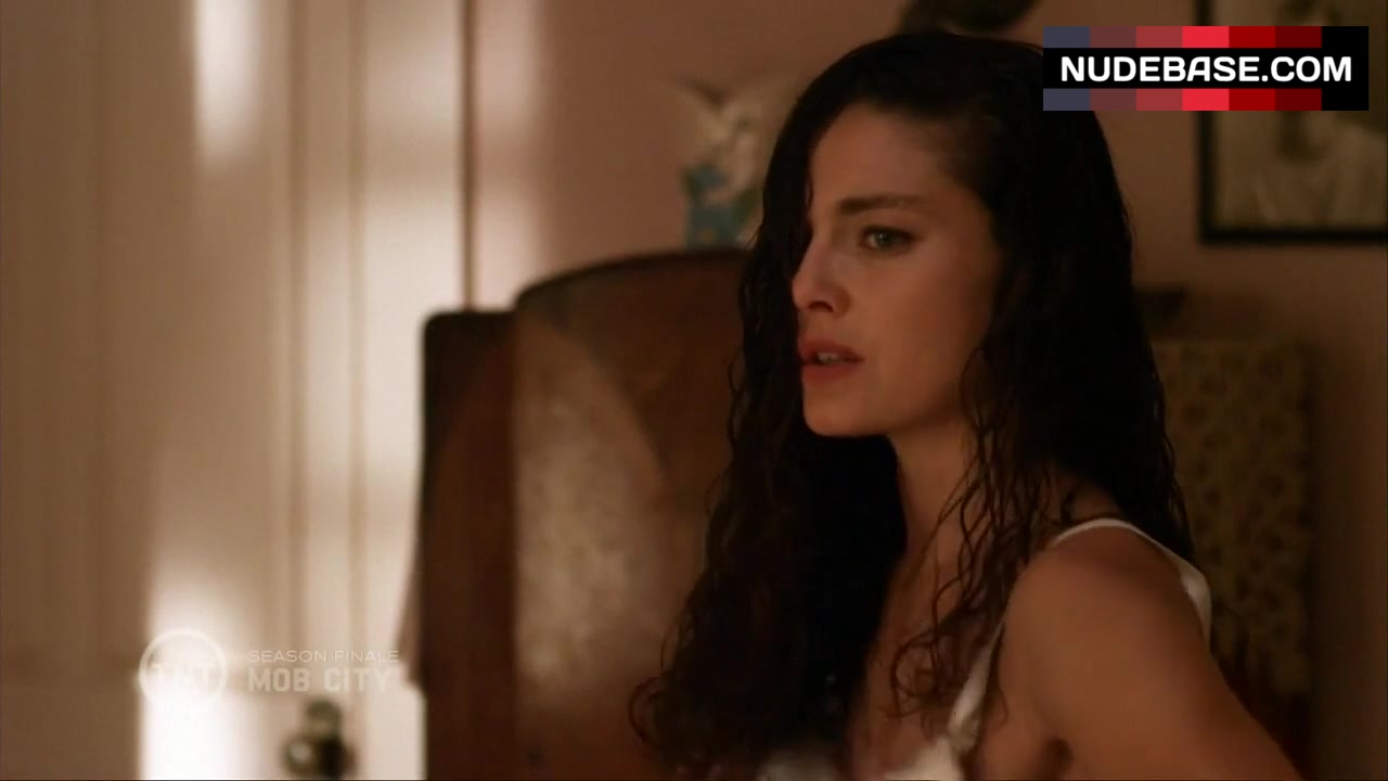 Attention: Alexa Davalos shows side boob in the series "Mob City" .