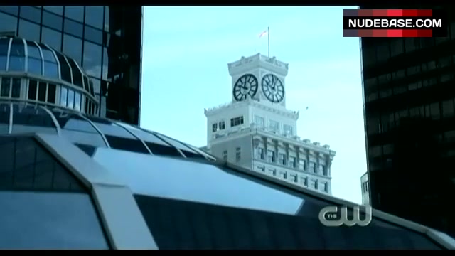 In this scene from the mystery drama "Smallville" (2001) Erica Durance is hot in underwear.